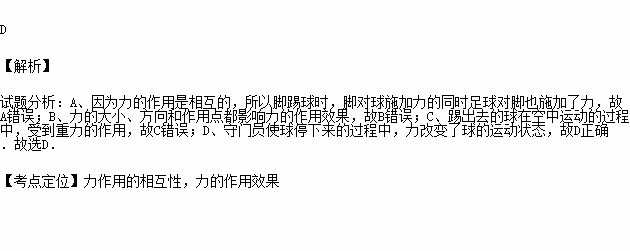 D.守门员使球停下来的过程中,力改变了球的运动状态