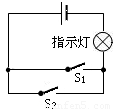 解答:解:(1)由题意可知,当开关S1与S2同时闭合时,指示灯亮,当开关S1与S2中有一个断开时,