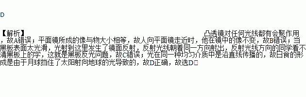 D. 日食的形成是由于月球挡住了太阳射向地球的光