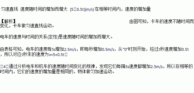 (4)通过分析电车和机车的速度随时间变化的规律,发现它们_________________是相同的。