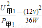 U甲2=36V×=4V,U乙2=36V-4V=32V
