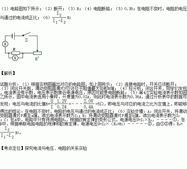£¨5£©ÊµÑéÖÐͨ¹ýµ÷½Ú»¬¶¯±ä×èÆ÷»¬Æ¬P£¬²â³öͨ¹ý¶¨Öµµç×èRµÄ²»Í¬µçÁ÷ºÍ¶ÔÓ¦µÄµçѹֵÈç±í£¬µÚ4´ÎʵÑéµçÁ÷±íʾÊýÈçͼÒÒËùʾ£¬Ôò´ËʱµçÁ÷±íʾÊýΪ A£¬Í¨¹ý·ÖÎö±íÖеÄÊý¾ÝÄܹ»µÃ³öµÄ½áÂÛÊÇ £®