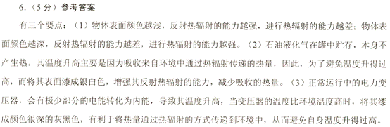 (10初赛)露天放置的大型石油液化气罐,为了防止因温度过高而造成爆炸等事故,罐体外表面通常漆成银白色,如图11所示。而露天安装的电力变压器,同样为了防止因温度过高而造成火灾等事故,在采用加注冷却油、安装散热管等一系列散热措施的同时,却把其外表面漆成颜色很深的灰黑色,如图12所示。同样是为了防止温度过高,一个外表面漆成颜色很浅灼银白色,另一个外表面却漆成颜色很深的灰黑色,这是为什么呢?
