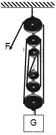 =6段,滑轮组由6段绳子承担物重,那么动滑轮需要3个,如果拉力的方向向上,定滑轮的个数应是2个;如果拉力的方向向下,定滑轮的个数应是3个.如图: