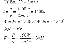 .自行车轻便、安全、无污染,很受人们喜爱。某同学在双休日骑电动自行车到海滨、连岛观光,途经全长7000m、被人们称之为“神州第一堤”的连云港拦海大堤。若电动自行车以18km/h的速度匀速行驶,电动自行车牵引力的功率为150W。求: