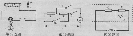 如图所示电路,R1=20Ω,U=6v。若只闭合开关S1、S3,则R1、R2的连接方式是 联,此时电流表示数为0.5A,则R2= Ω。
