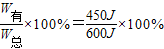 对物体所做的有用功 W=Gh=450N×1m=450J.
