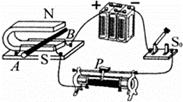 借助如图所示的实验装置,小明探究“磁场对通电直导线的作用”.闭合开关S0,原本静止的轻质硬直导线AB水平向右运动.要使AB水平向左运动,下列措施中可行的是( )