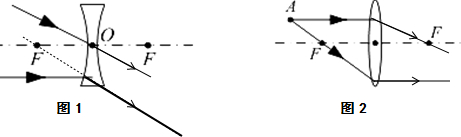 解答 解:①平行于主光轴的光线经凹透镜折射后,其折射光线的反向延长线过焦点;过光心的光线经凹透镜折射后传播方向不改变.如图所示: