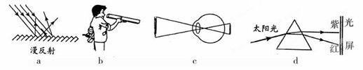 | D.图d表示太阳光经过三棱镜色散后的色光排列情况 |