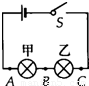 B、如果乙灯丝断了,两灯都不亮,电压表并联到A、B两点间其示数为0;将电流表并联到B、C两点间指针有明显偏转,且甲灯亮乙灯不亮.此选项符合题意;