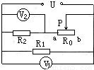 如图所示的电路中,电压U保持不变,当滑动变阻器的滑片P由a端滑到b端的过程中,两电压表示数的变化情况为( )