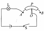 如图所示为亮度可调台灯的电路示意图,其中AB是一根电阻丝,OP是滑动片,可绕O点旋转,P端与电阻丝接触良好。连接好电路后,滑片OP顺时针转动时,流过灯泡L的电流变 (选填“大”或“小”),灯泡变 (选填“亮”或“暗”)。