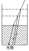 如图所示,有一束光线射入杯中,在杯底形成光斑,逐渐往杯中加水,光斑将( )