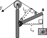 (2)做出力臂L的垂线,与杠杆相交于一点,即F的作用点,由于G使杠杆沿顺时针方向转动,所以F方向应使杠杆沿逆时针方向转动,作用点在A点.