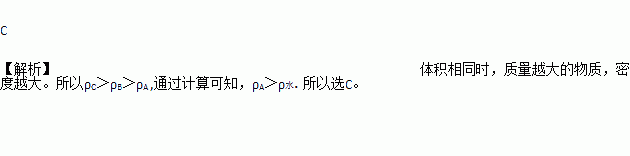 如下图所示,表示A、B、C三种物质的质量跟体积的关系,由图可知 ( ).