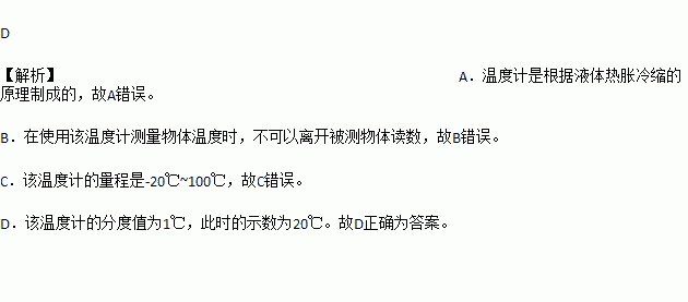 C. 该温度计的量程是20~100℃