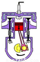 ②一个气阀打开,另一个气阀关闭的是吸气冲程和排气冲程,而在吸气冲程中活塞向下运动,排气冲程中活塞向上运动;
