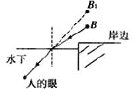 (1)如图所示,岸边有一物体B,潜水员从水中能看见B的像B1,请作出一条眼睛能看到B1的