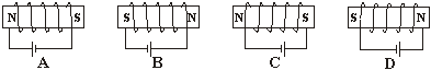 在下列图所示的四个图中,正确地表示出通电螺线管极性关系的是: