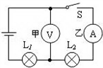 如图所示的电路中,甲、乙是两只电表.闭合开关S后,两灯都能发光.请你在圆圈内填入电流表和电压表的符号.