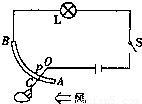 【答案】分析:AB和重物共同组成滑动变阻器,而灯泡与滑动变阻器串联,当风力增大时,通过重物偏转的方向分析电阻丝AB接入电路中电阻的大小变化,然后利用欧姆定律分析电路中电流的变化,根据电流的变化判断灯泡的亮度.