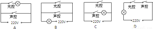 居民楼的楼道里,夜间只是偶尔有人经过,电灯总是亮着造成很大浪费.科研人员利用“光敏”材料制成“光控开关”.天黑时,自动闭合,天亮时,自动断开;利用“声敏”材料制成“声控开关”.当有人走动发出声音时,自动闭合,无人走动时自动断开.若将这两种开关配合使用,就可以使楼道灯变得“聪明”.则这种“聪明”的电路是______: