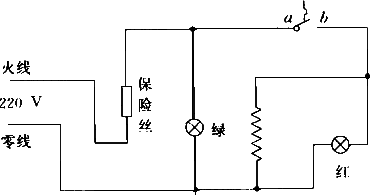 (3)保险丝对电路起保护作用。(设红、绿指示灯及电热丝额定电压均为220V)