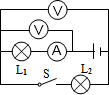 £¨4£©×îÏÂÃæµÄȦÓëL1´®Áª£¬Òò´ËΪµçÁ÷±í£»ÖмäµÄȦÓëµÆL1ºÍµçÁ÷±í²¢Áª£¬Òò´ËÊǵçѹ±í£»×îÉÏÃæµÄȦÓëL2²¢Áª£¬Òò´ËΪµçѹ±í£¬ÈçͼËùʾ£º![]()
