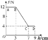 解答 解:(1)由图象可知,当h=0时,弹簧测力计示数为12N,此时圆柱体处于空气中,G=F拉=12N,