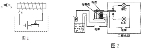 (1)将图1中的电磁铁连入你设计的电路中(在虚线框内完成),要求:电源电压恒定不变;当滑动变阻器的滑片向左滑动时,电磁铁的磁性增强.闭合开关S,小磁针受力静止时,其N、S极如图所示.