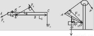 (2)如图乙所示的是汽车液压刹车装置的一部分。该装置中AOB为一个杠杆,O是杠杆的支点,请画出刹车时它所受的动力F1的示意图和动力臂l1及阻力F2的示图。