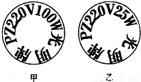 B、说法错误,由P=知,当额定电压相等时,功率大者,电阻小,甲的额定功率是100W,大于乙的额定功率25W,故应是甲灯的电阻小.