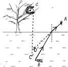 如图,岸边树梢C处有一鸟巢,水中B处有一条鱼,人眼在A点看到水中出现“鱼钻鸟巢”的景象,请作出人眼看到这种景象的光路图.