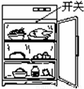 如图所示,电冰箱门框上有一个通过冰箱门来控制的开关,当冰箱门打开时,与开关相连的弹簧伸长,开关闭合使冰箱内的照明灯发光;当冰箱门关闭时,弹簧被压缩,开关断开使冰箱内的照明灯熄灭。图4中符合要求的电路是