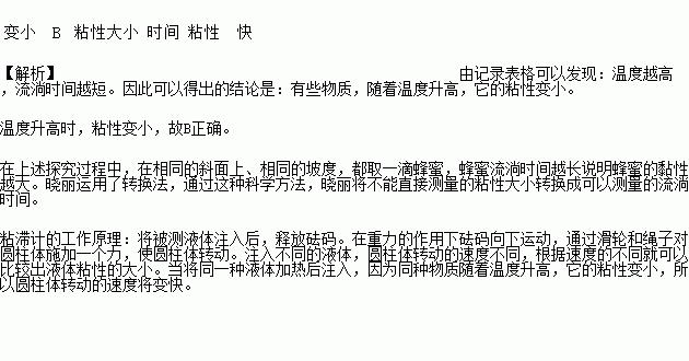 (1)晓丽得出的结论是:有些物质,随着温度升高,它的粘性__________。
