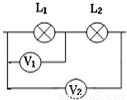 解答:解:因为V2>V1,所以V2所用的量程是0-15V;