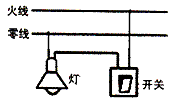 如图所示。用笔画线代替导线将电灯和开关接到电路中。