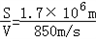 (1)它的飞行速度是V=2.5×340m/s=850m/s,