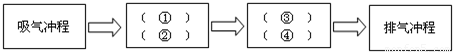 B£®¢ÙѹËõ³å³Ì£¬¢ÚÄÚÄÜת»¯Îª»úеÄÜ£¬¢Û×ö¹¦³å³Ì£¬¢Ü»úеÄÜת»¯ÎªÄÚÄÜ
