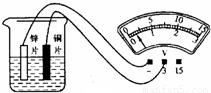 如图,将连在电压表上的铜片和锌片插入烧杯的盐水中,就制成了一个电池,观察电压表指针的偏转以及接线情况可知,该电池的电压是______V,_____片是它的正极.