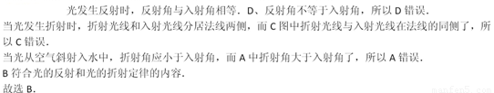 如图所示的光路图中,能正确表示光从空气射人水中时发生的反射和折射现象是(     )