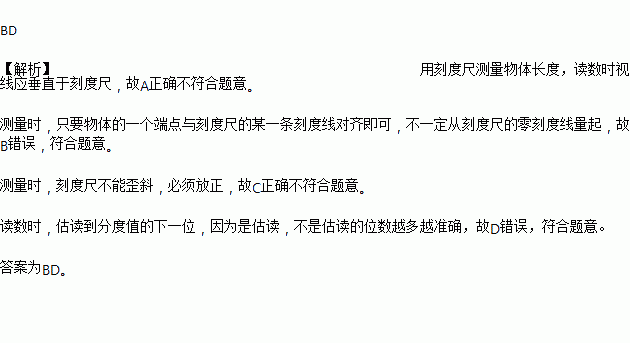 A. 读数时视线应垂直于刻度尺