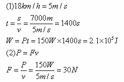 .自行车轻便、安全、无污染,很受人们喜爱。某同学在双休日骑电动自行车到海滨、连岛观光,途经全长7000m、被人们称之为“神州第一堤”的连云港拦海大堤。若电动自行车以18km/h的速度匀速行驶,电动自行车牵引力的功率为150W。求: