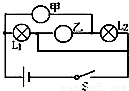 解答:解:由图可知L1由导线直接接在了电源两端;若甲为电压表则L2将被短路;故甲只能为电流表,故两灯应为并联;故B正确;