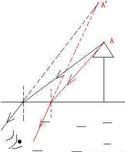 点评:本题考查光的直线传播和折射,要知道人从水面下看水面上的物体,物体比实际位置高;人在水面上看水面下的物体,物体比实际位置偏高.这都是光折射的结果.