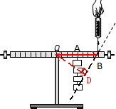 某同学做探究杠杆平衡条件的实验时,在A点悬挂2个重均为0.5N的钩码(如图所示),在B点用弹簧测力计拉杠杆,使其水平平衡.要使弹簧测力计示数最小,弹簧测力计的拉力应沿