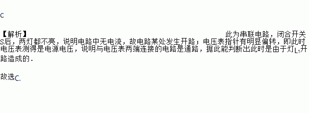 A. 灯L1短路 B. 灯L2短路 C. 灯L1开路 D. 灯L2开路