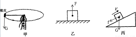 (1)小明同学用一根细线拴一块橡皮,甩起来,使橡皮绕手做圆周运动,请你在图甲中画出橡皮所受重力示意图.