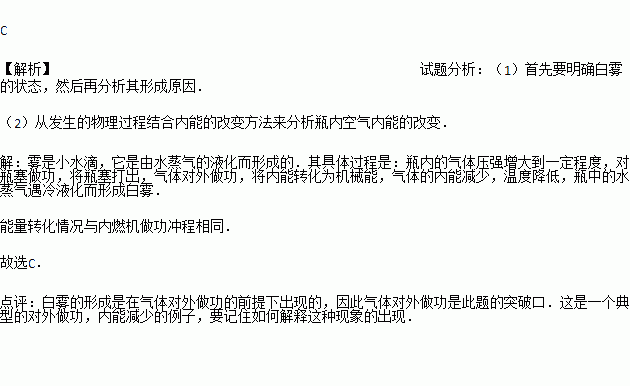 A. 玻璃瓶内和瓶口出现的白雾是水蒸气